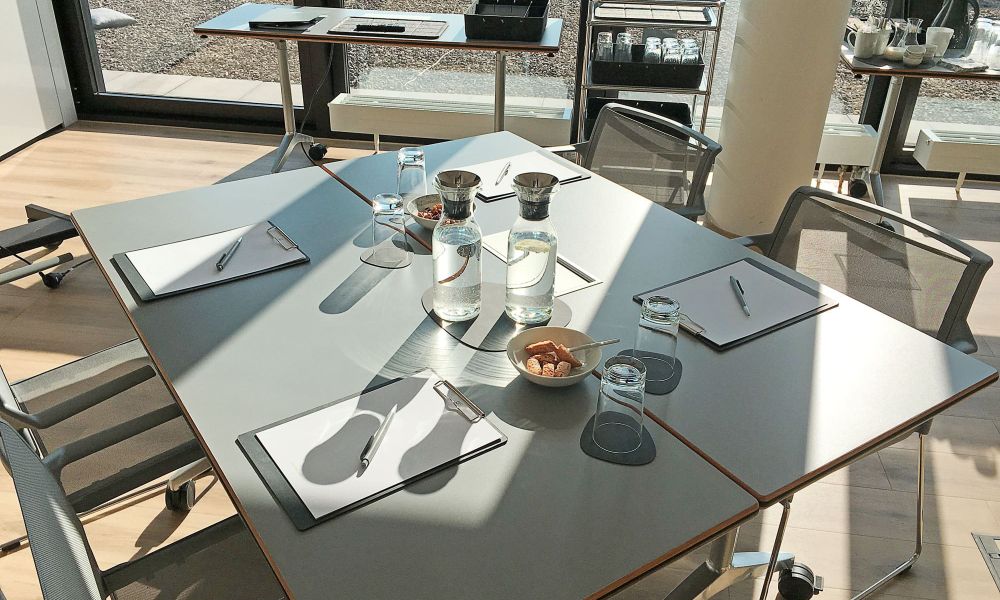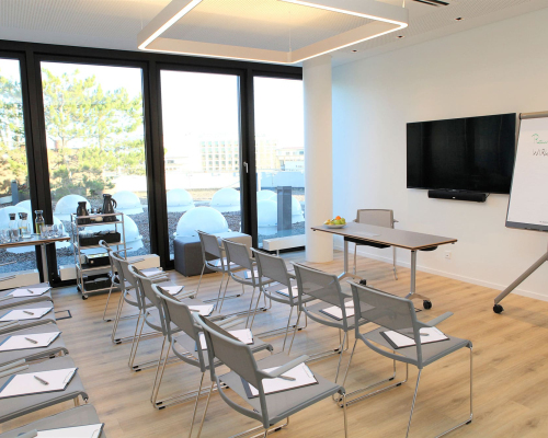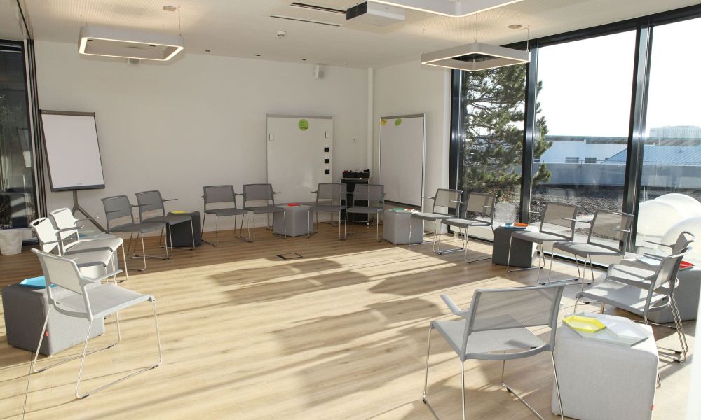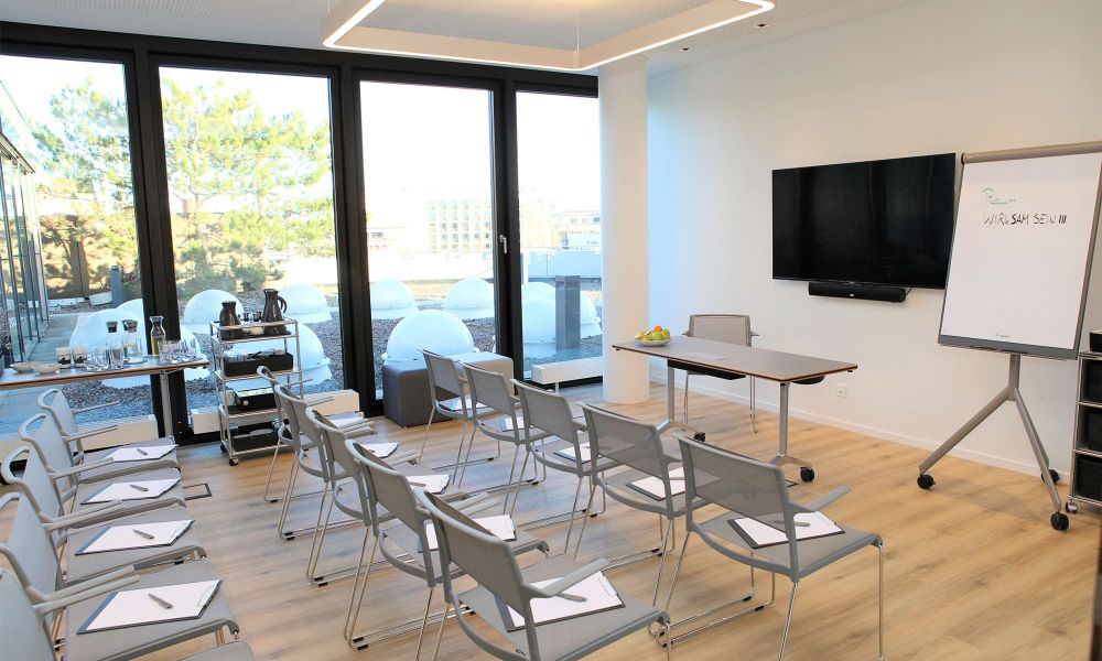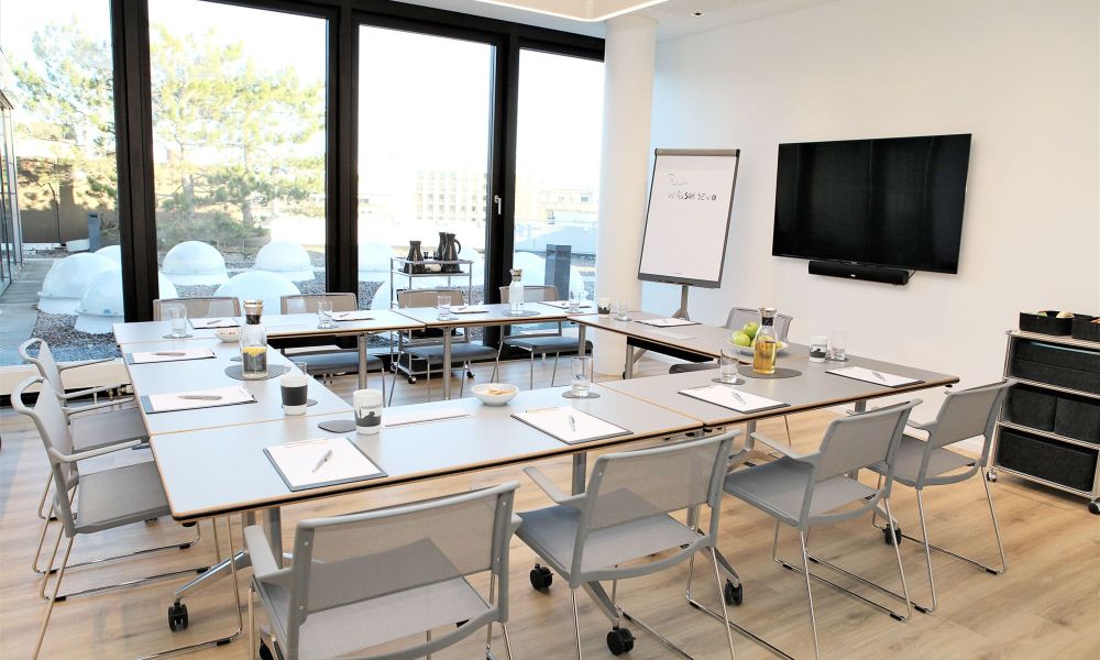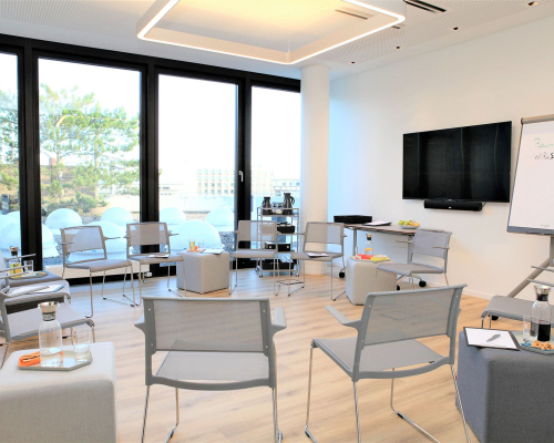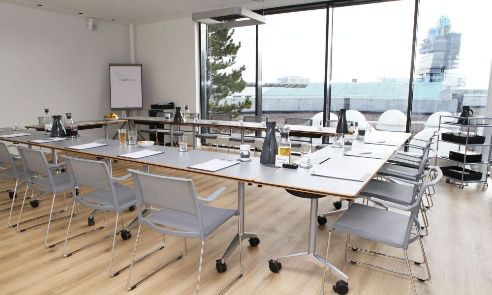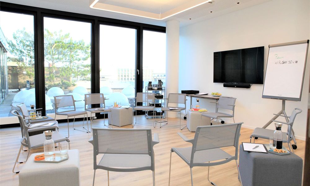 Gleichzeitig ist es uns wichtig, dass Sie genauso kreativ arbeiten können, als wenn alle Teilnehmer vor Ort sind. Passende Raumkonzepte, vorbereitete Kameraeinstellungen und die Integration von Gruppenräumen sind dabei besonders hilfreich. Wir beraten Sie gerne zu hybriden Formaten in unseren Tagungsräumen und unterstützen Sie morgens & über den Tag hinsichtlich der entsprechenden Einstellungen. Sprechen Sie uns an!