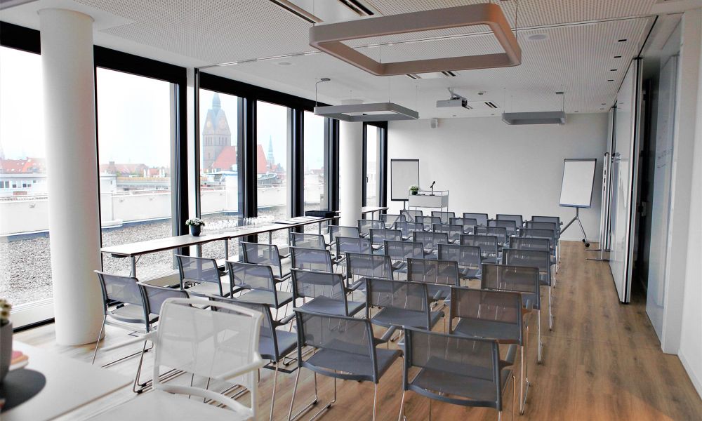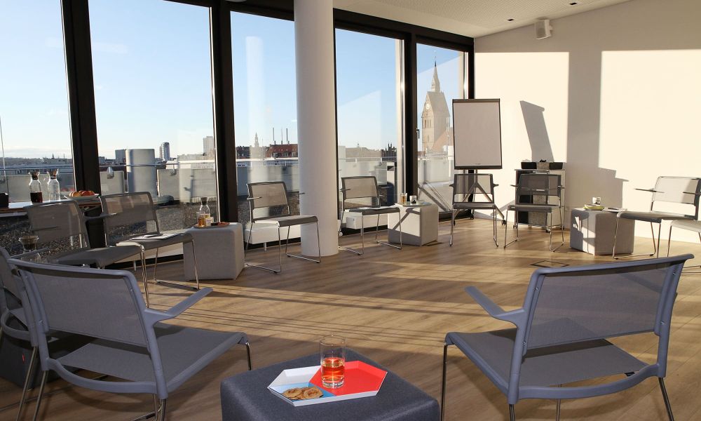 GASTFREUNDSCHAFFT bietet Räume der Begegnung und des Schaffens – für Organisationen und ihre Teilnehmer sowie Moderatoren, Berater und Coaches. Mitten in der Großstadt Hannovers und zugleich eine Oase für sich. Darauf ausgelegt, sich in Workshops, Seminaren und Coachings auf Augenhöhe zu begegnen und gemeinsam Ziele zu erreichen. Freuen Sie sich auf flexibel nutzbare Räume, die sich nach Ihnen und Ihren spezifischen Bedürfnissen ausrichten und gestalten lassen. Bodentiefe Fenster sorgen für eine lichtdurchflutete Atmosphäre über den Dächern Hannovers. Wir freuen uns darauf, Sie bei uns begrüßen zu können: