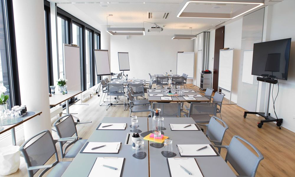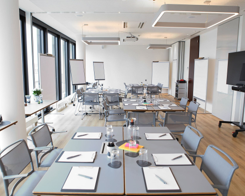 Im persönlichen Beratungsgespräch entwickeln wir mit Ihnen Ihr passendes Raumkonzept. Sie können zwischen einzelnen Räumen unterschiedlicher Größe und Lage wählen und diese auf Wunsch auch miteinander kombinieren. So entstehen aus flexibel gestaltbaren Einzelzimmern: Plenar- und Gruppenarbeitsräume ausgestattet mit neuester Konferenz- und Präsentationstechnik. Klassische und ergänzende Möbel arrangieren wir flexibel nach Ihren Vorstellungen.