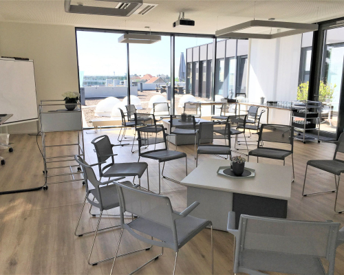- “Unter sich sein“ & unterschiedliche Arbeitsräume, wie die Lounge, den Flur und die Terrasse, individuell und ohne Rücksicht auf andere Gruppen flexibel nutzen.