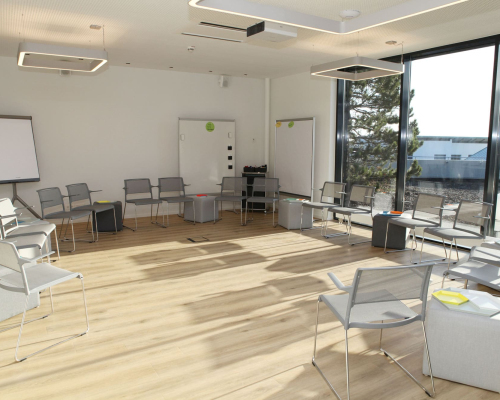 - Zur halben GFS gehören der Entre Nous, der Flur, die Lounge, die Terrasse und die Workshopräume “Wirksam sein III–V“.