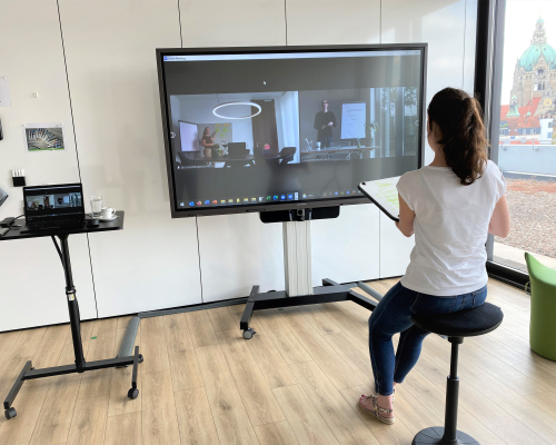 Integriert sind diese u.a. in unsere Konferenz-Monitorsysteme mit antibakteriell beschichtetem 4K-Touchdisplay und fahrbarem höhenverstellbaren Displaylift. Dies erlaubt ein flexibles Einstellen der Bildgebung je nach Raumkonzept und Gruppengröße.