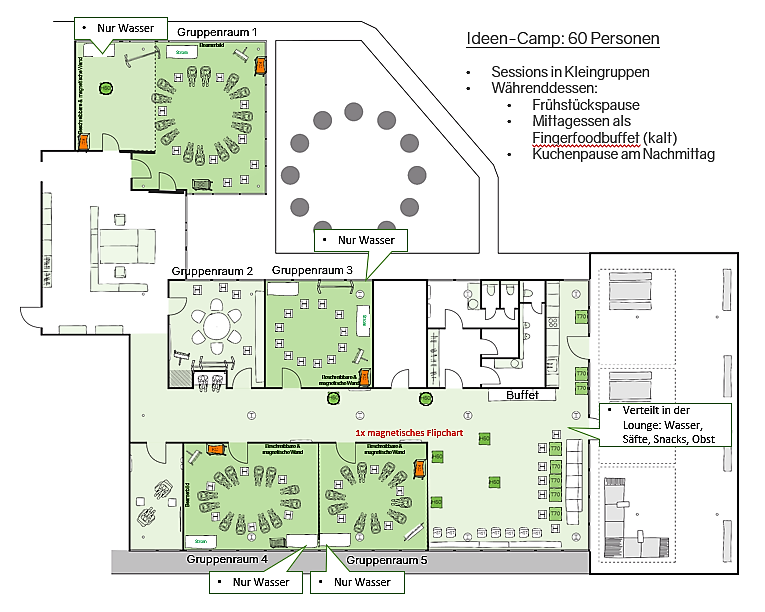 - Gestalten Sie mit uns Tagungs- und entsprechende Gruppenräume mit passgenauen Raum- & Kreativkonzepten.
