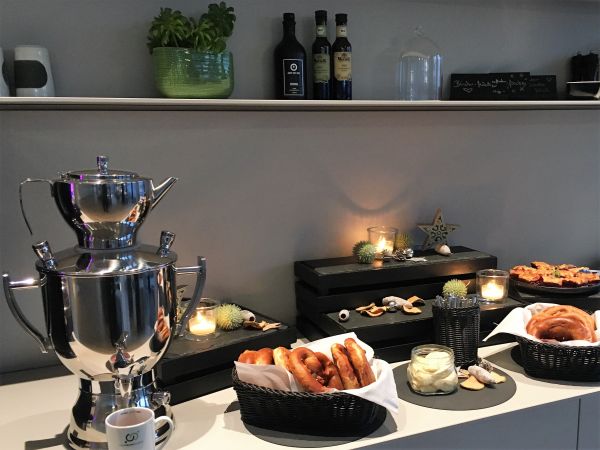 Kennenlernen, inhaltliches Weiterdenken, Team-Zeit, Geburtstag, Verabschiedung – alles Anlässe, um nach gemeinsamer Arbeit zusammen zu sein. Auch ein jahreszeitlicher Bezug kann gerne gewählt werden und schafft, wie hier auf dem Bild beispielhaft dargestellt, die notwendige weihnachtliche Stimmung. Glühwein, Mandeln, Süsses & Herzhaftes lassen sich kreativ und passend zum Anlass für Sie zusammenstellen. Gerne kombinieren wir auch eine warme Suppe oder Fingerfood dazu. Ganz nach Wunsch!!!