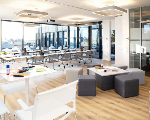 Das Umbauen der Räumlichkeiten für Gruppenarbeiten oder Ortswechsel im Arbeiten, wie der Lounge oder der Terrasse, erleben unsere Gäste durch unsere Geschwindigkeit bei gleichzeitigem Achten auf Details als agilen Anstoß im eigenen Arbeiten. Diese erlebbare Flexibilität & Dynamik hat aus unserer Sicht einen wichtigen Einfluss auf das Ergebnis.