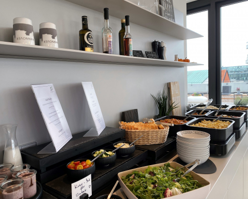 Das Mittagessen kann je nach Anliegen und Teilnehmerzahl als Buffet präsentiert oder als Fingerfood gereicht werden. Sobald es warm wird, bieten wir auch gerne Grillen auf unserer Dachterrasse an. Nachmittags runden ein leckeres Kuchenbuffet das kulinarische Angebot ab. Soll es nach der Tagung noch weitergehen, können sich unsere Abend-Formate sehen lassen - als Ausklang unser "Get together" & als Beisammensein unser "Abendessen".