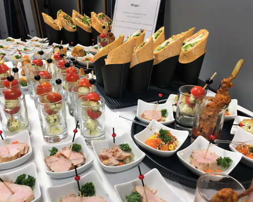 Sollte das Event als Abendveranstaltung geplant sein und ein Vortrag oder Netzwerktreffen stattfinden, so bietet sich Fingerfood an. Dieses wird von unseren Gästen immer als sehr kommunikativ wahrgenommen, um sich bewegt mit verschieden Teilnehmern auszutauschen. Und auch das Fingerfood selbst bietet allein durch die kunstvolle Zubereitung Gesprächsstoff.