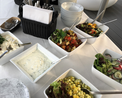 Bei Teams wird auch gerne ein Buffet – im Sommer als Grillbuffet – ausgewählt. Hier ist der Rahmen festlicher und auch die Gespräche durch das gemeinsame Sitzen und Essen am Tisch sind mit mehr Nähe verbunden.