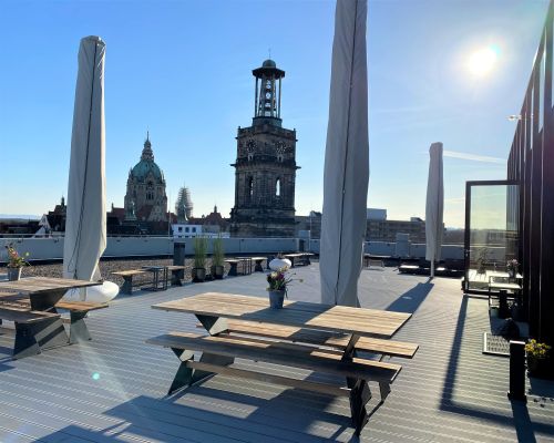 Durch unsere großen Fenster in den Räumen und durch die Terrassenflächen können Sie weiterhin leicht frische Luft tanken. Für alle diejenigen Teams, die sich mit mehr Schutz wohler fühlen, stehen wie gewohnt weiterhin in allen Räumen Luftreiniger zur Verfügung, die aktiv Krankheitserreger wie Viren und Bakterien aus der Raumluft herausfiltern können.