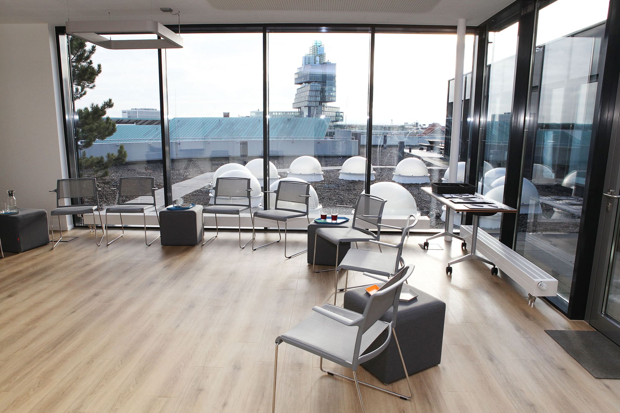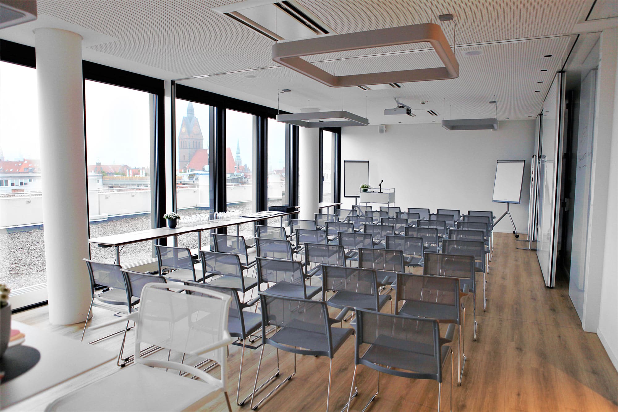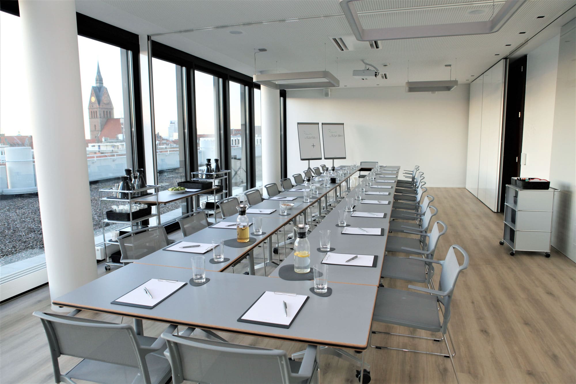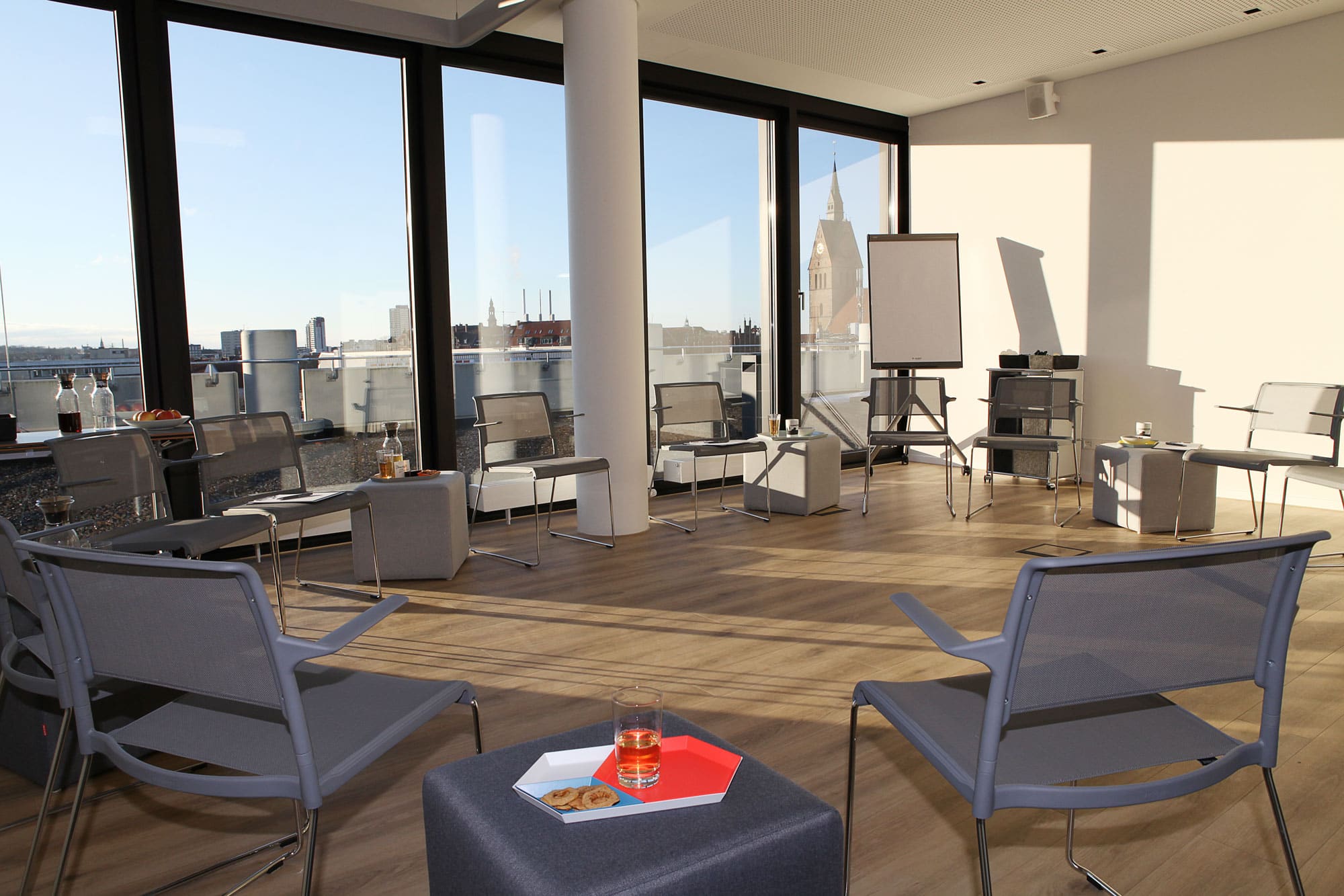 GASTFREUNDSCHAFFT bietet Räume der Begegnung und des Schaffens – für Organisationen und ihre Teilnehmer sowie Moderatoren, Berater und Coaches. Mitten in der Großstadt Hannovers und zugleich eine Oase für sich. Darauf ausgelegt, sich in Workshops, Seminaren und Coachings auf Augenhöhe zu begegnen und gemeinsam Ziele zu erreichen. Freuen Sie sich auf flexibel nutzbare Räume, die sich nach Ihnen und Ihren spezifischen Bedürfnissen ausrichten und gestalten lassen. Bodentiefe Fenster sorgen für eine lichtdurchflutete Atmosphäre über den Dächern Hannovers. Wir freuen uns darauf, Sie bei uns begrüßen zu können: