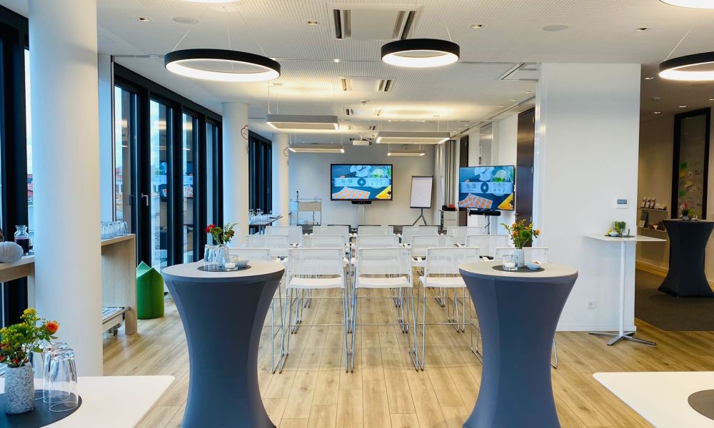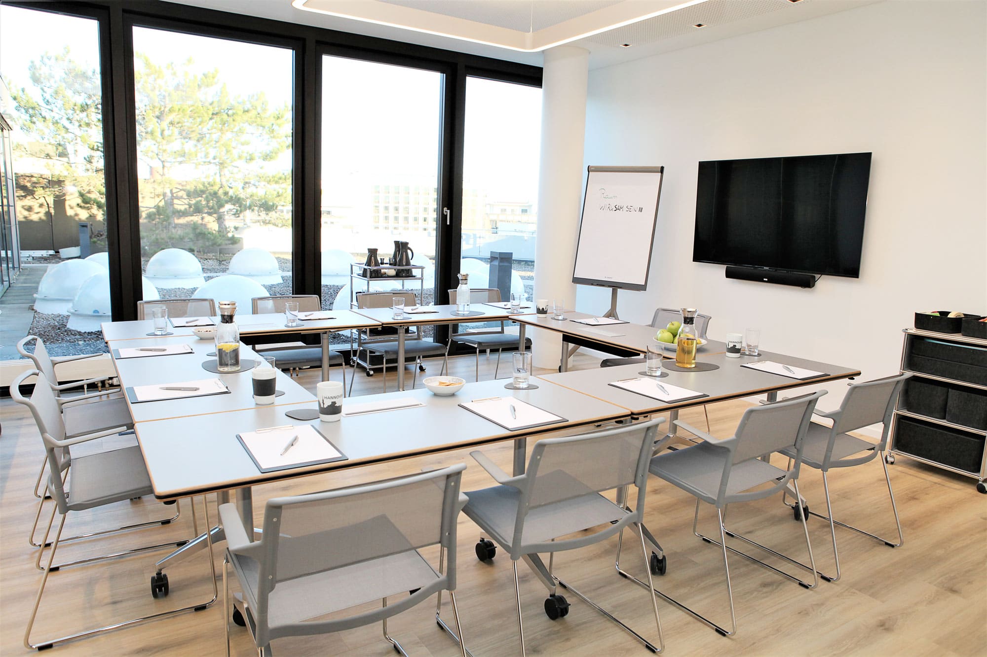 Gleichzeitig ist es uns wichtig, dass Sie genauso kreativ arbeiten können, als wenn alle Teilnehmer vor Ort sind. Passende Raumkonzepte, vorbereitete Kameraeinstellungen und die Integration von Gruppenräumen sind dabei besonders hilfreich. Wir beraten Sie gerne zu hybriden Formaten in unseren Tagungsräumen und unterstützen Sie morgens & über den Tag hinsichtlich der entsprechenden Einstellungen. Sprechen Sie uns an!