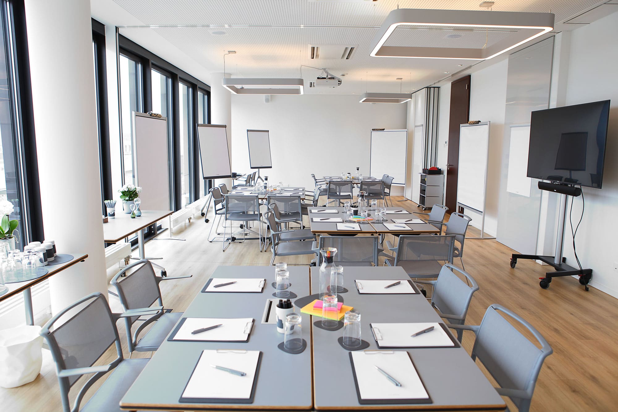 Im persönlichen Beratungsgespräch entwickeln wir mit Ihnen Ihr passendes Raumkonzept. Sie können zwischen einzelnen Räumen unterschiedlicher Größe und Lage wählen und diese auf Wunsch auch miteinander kombinieren. So entstehen aus flexibel gestaltbaren Einzelzimmern: Plenar- und Gruppenarbeitsräume ausgestattet mit neuester Konferenz- und Präsentationstechnik. Klassische und ergänzende Möbel arrangieren wir flexibel nach Ihren Vorstellungen.
