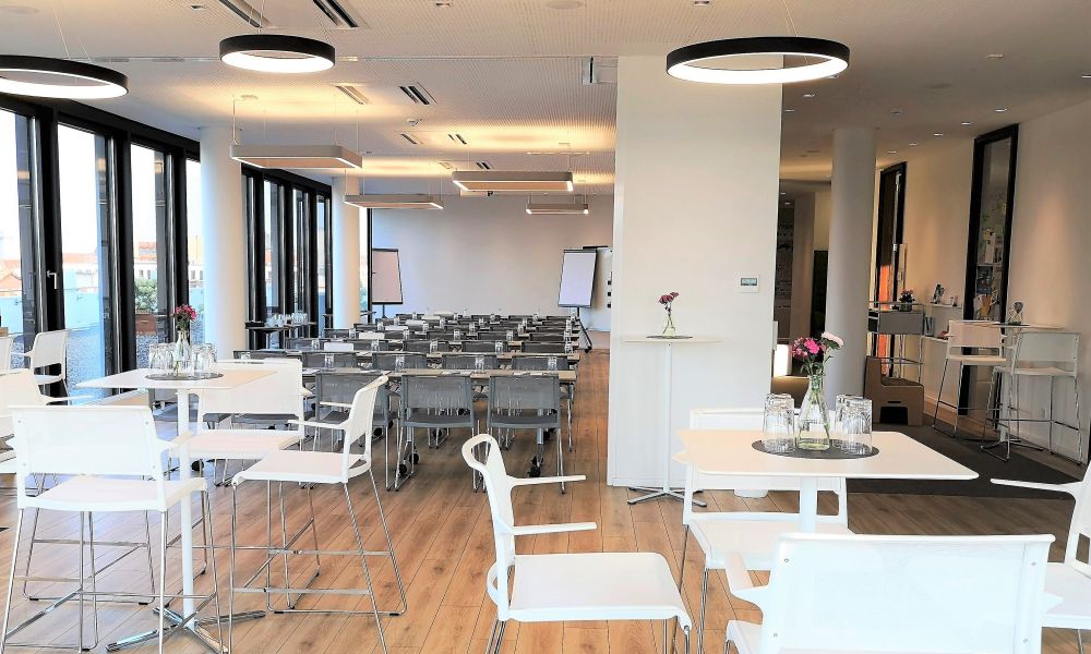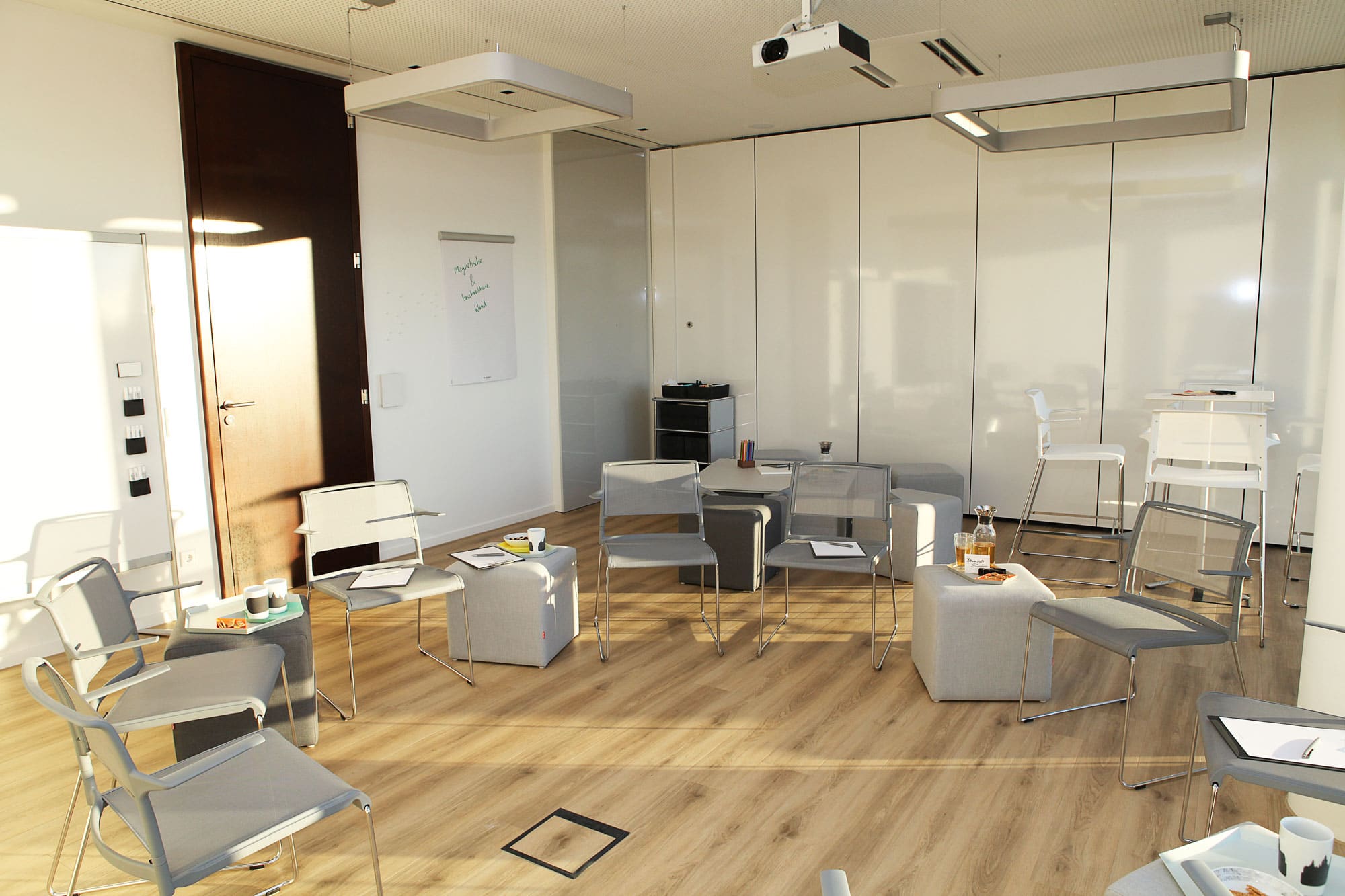 Da die Anliegen unserer Kunden oft sehr verschieden sind, ist Teil unserer Leistung eine punktgenaue Beratung vorab. Damit stellen wir sicher, dass Sie hier vor Ort Ihr kreatives Potenzial optimal entfalten können. Aus Überzeugung bieten wir Ihnen daher flexible Raumsettings mit unterschiedlichen Möblierungen an.